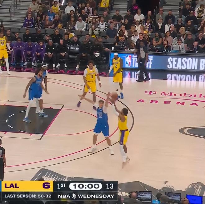 盖布-文森特又迎来了一场高光时刻,NBA季前赛湖人VS独行侠的首节,他先发登场连续命中5个三分球,短短5分钟连拿18分技惊四座,而且他是在2.06米身高的弗拉格追防的情况下连中三分。