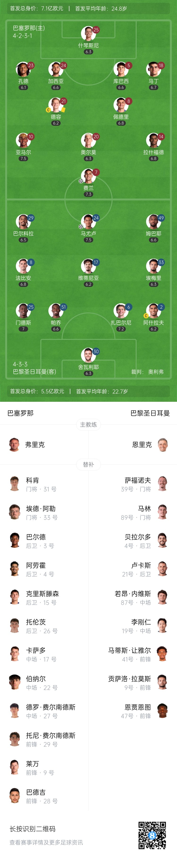 半场-巴萨1-1巴黎 拉什福德助攻费兰破门马尤卢扳平亚马尔屡造险
